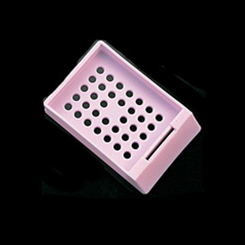 Made of polyacetyle, Deltalab’s Pink Embedding Cassettes without Lid have 34 round holes with a diameter of 2mm. They are resistant to solvents used in histological processes. It is possible to write on them.