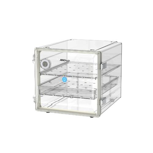 The stackable Jeio Tech SDC-30, 35 Litre Cubic Non-Vacuum Desiccator is made up of a moulded cubic design, providing space efficiency. This desiccator is shatterproof, non-corrosive and has an easy-to-clean polycarbonate construction.