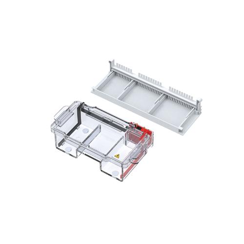 Moulded gel trays and casters offer leak-free casting. The gel trays have a built-in levelling feature and level bubble for uniform gel casting. Gel length can also be adjusted. Comb-setting grooves in gel trays or caster prevents combs from sliding.